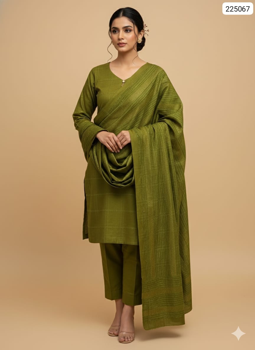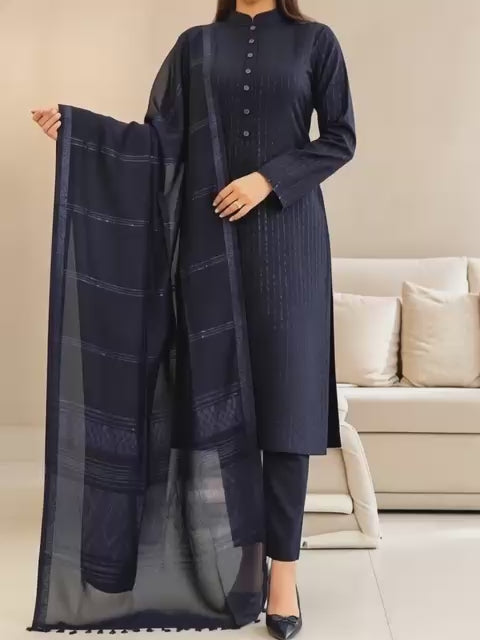 3 piece winter Banarsi jacquard Shawl with Dhanak Marina Shirt and trouser